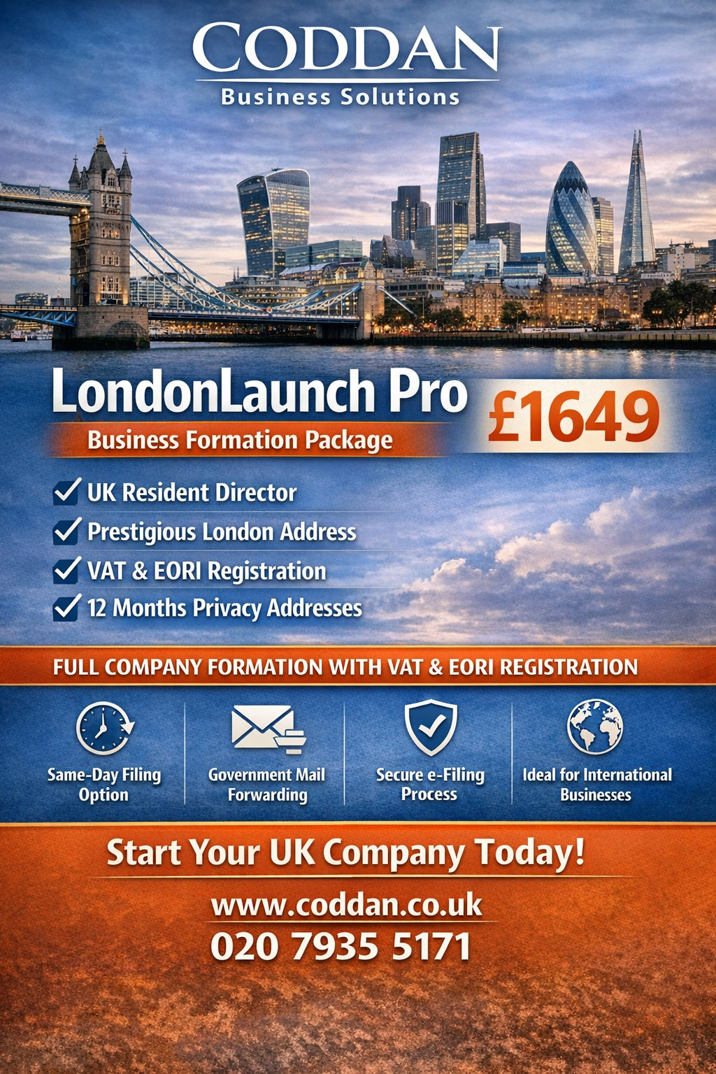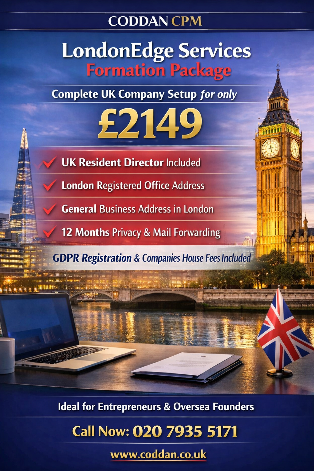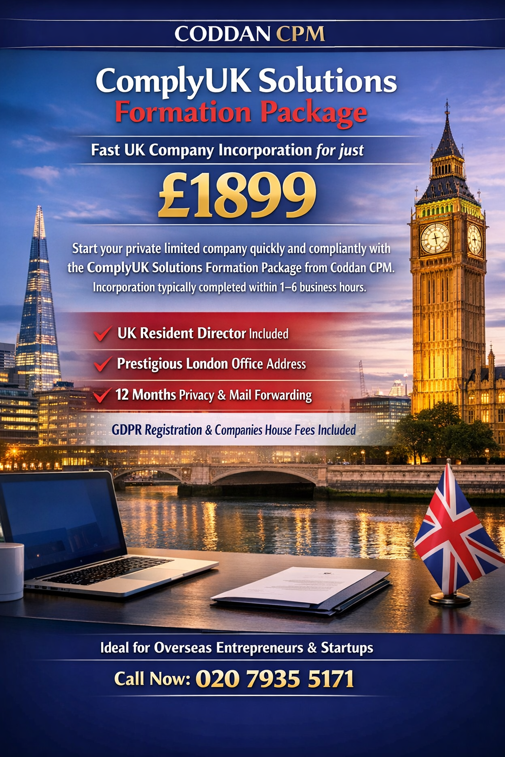 Start your UK business effortlessly with Coddan CPM's compliant Company Formation Package. Enjoy fast online registration and full regulatory support!