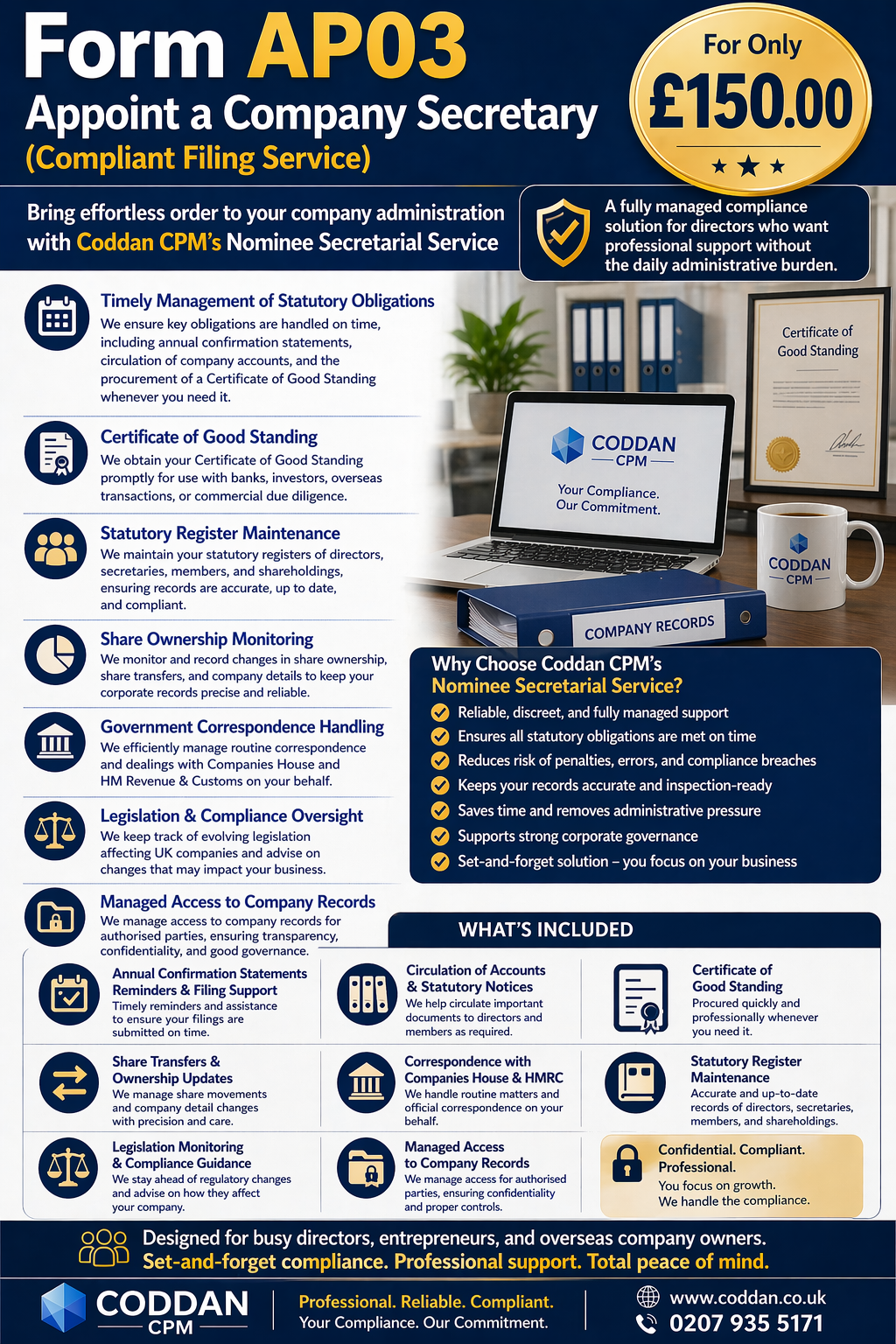 - Elevate your corporate governance by hiring an experienced company secretary. Ensure legal compliance and reduce the administrative load on your directors.