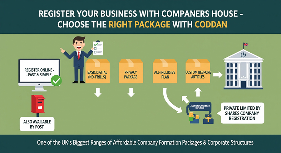 Coddan CPM Ltd as your certified corporate service provider offers eight simplified and good priced electronically formation packages to set up your company in London.