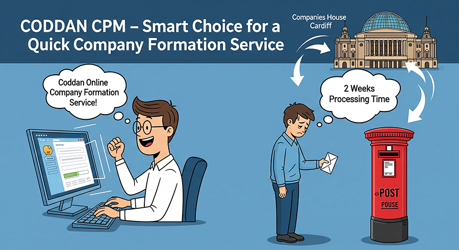 Choose one of our company formation packages and use the “Web-Incorporation Service” for simple establish of your private limited company today. Coddan CPM Ltd offers only simple online company formation within 24 hours, online business registration with the easy to follow instructions. This is typically done online and involves paying a registration fee, with the company designation usually being “Limited” or “Ltd” at the end of the name.