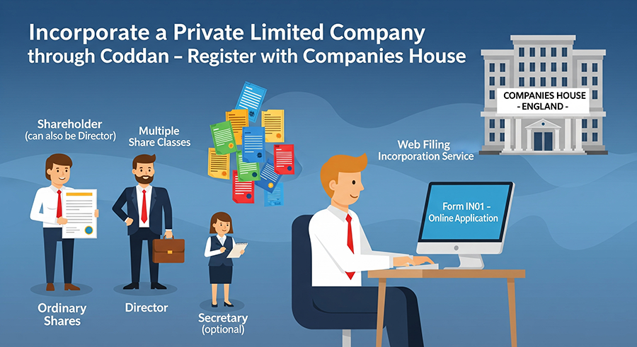 Start your UK limited company registration in just 10 minutes; Coddan’s intuitive Web-Filing platform makes the process quick and hassle-free.